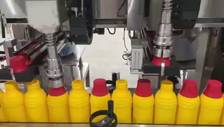 straw hat bottle pesticide herbicide filling capping and labeling line